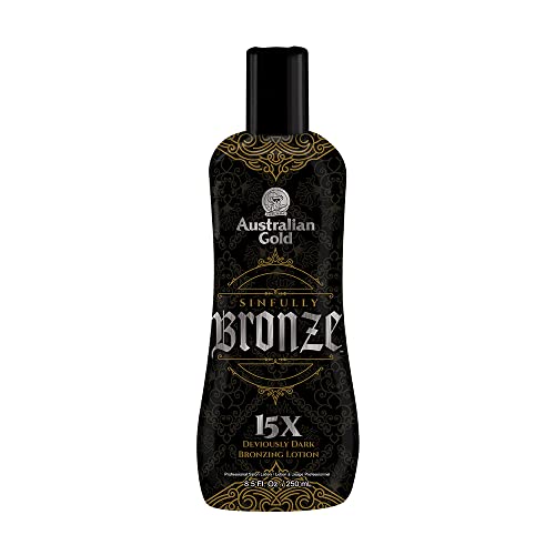The Australian Gold Sinfully Bronze 15x Dark Bronzer with Tyrosine 8.5oz is a luxurious tanning product that offers deep, dark bronzing power and intense moisturization for silky, smooth, and soft skin.